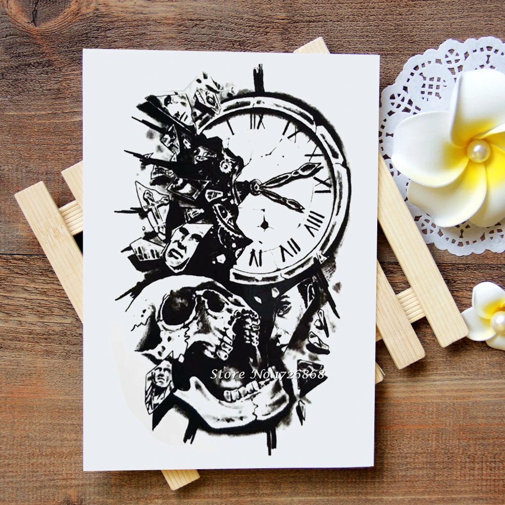 Waterproof Temporary Tattoos Stickers Black Clock Tattoo Flash Water Transfer Tattoos Fake Tattoos For Women Men 390 Water Transfer Tattoo Clock Tattooswaterproof Temporary Tattoos Aliexpress